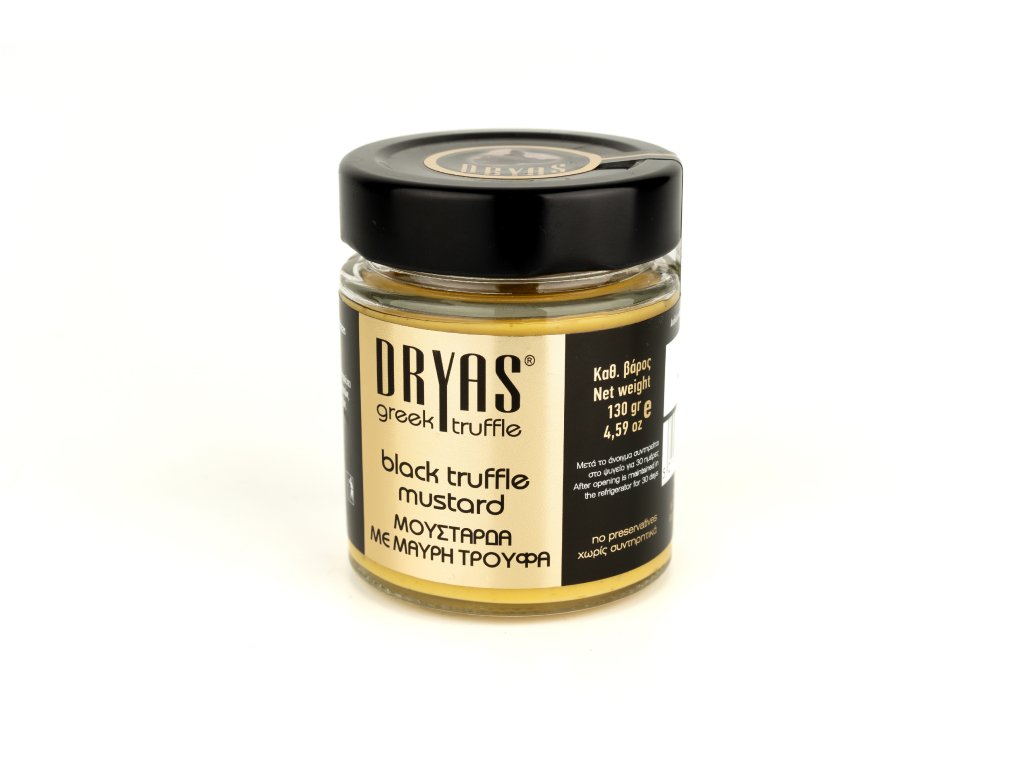Hořčice z lanýžové farmy Dryas ochucená kurkumou a černým lanýžem. Výborná součást různých dresingů a výborná v kombinaci s grilovaným masem