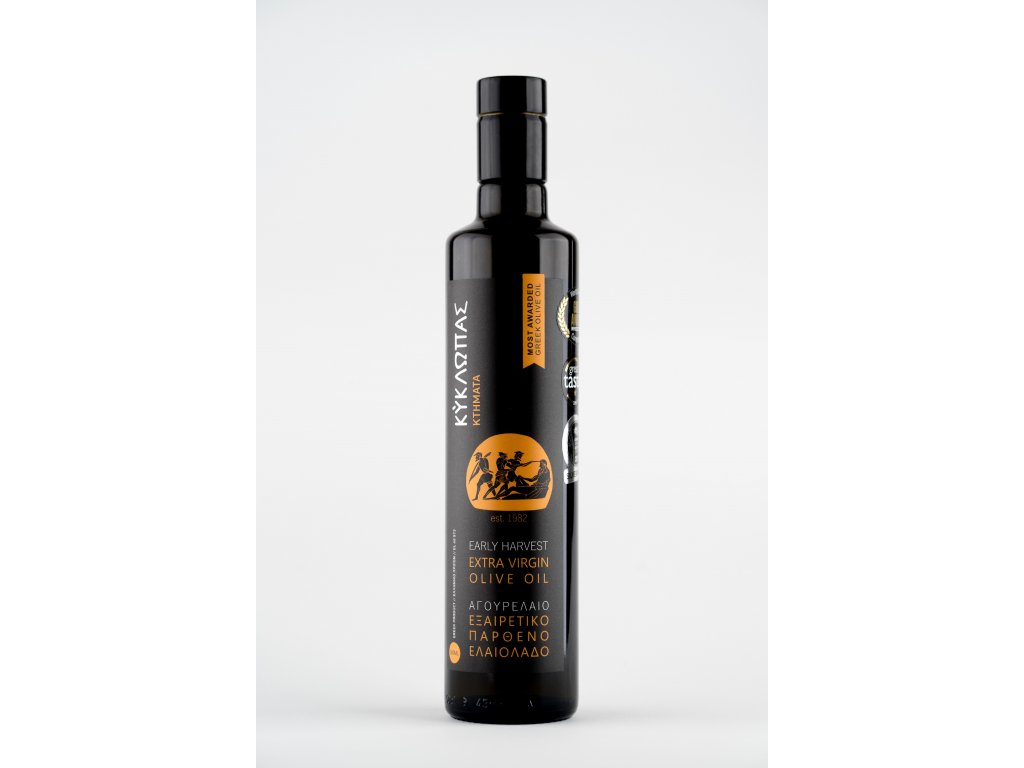Ranná sklizeň - jediný odrůdový extra panenský olivový olej s mimořádně nízkou kyselostí vyrobený z oliv Makri. Díky místnímu mikroklimatu a půdní struktuře má jedinečné vlastnosti a je sklízen v polovině října. Vyniká ovocitou chutí střední až vysoké intenzity s výraznými tóny čerstvé zelené olivy a zeleného banánu, artyčoků a čerstvě sekané trávy. Olej se vyrábí již 4 až 8 hodin po sklizni a lisuje se za studena za optimálních podmínek. Chuť je komplexní s jemnými hořkými a kořenitými tóny.