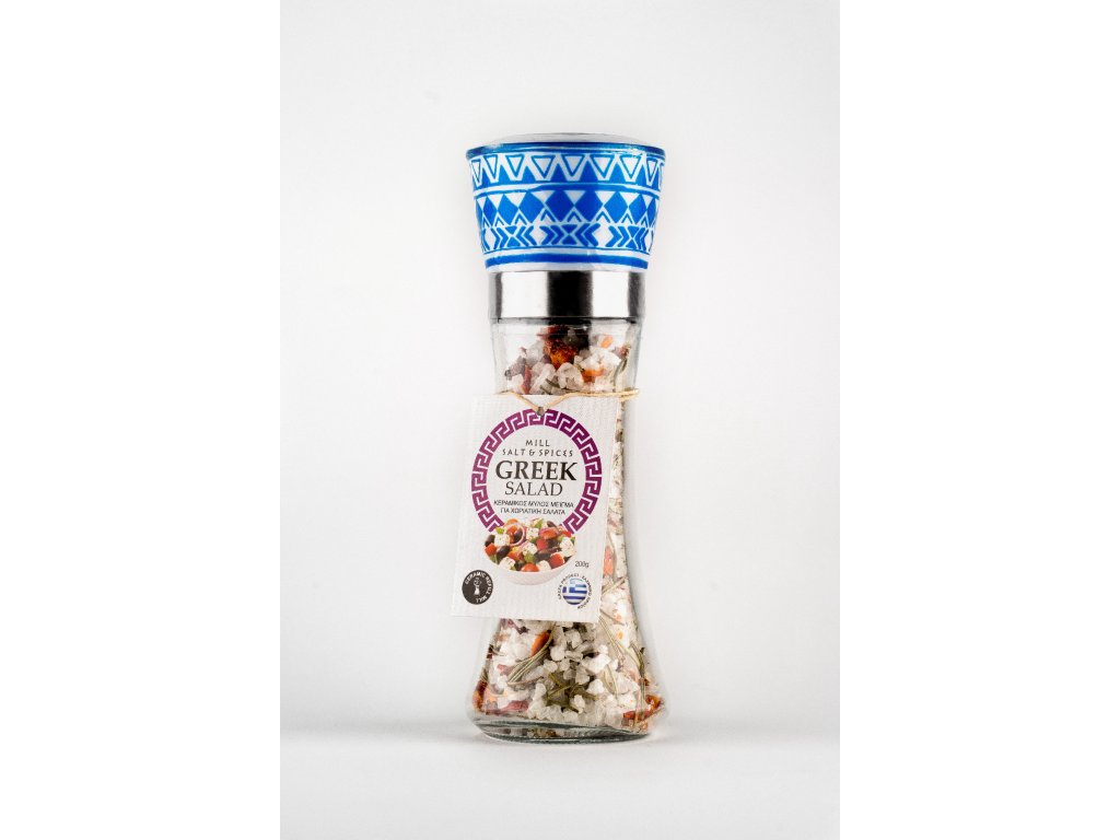 Ochucená sůl Odysey v praktickém mlýnku je vhodná pro dochucení zeleninových salátů.